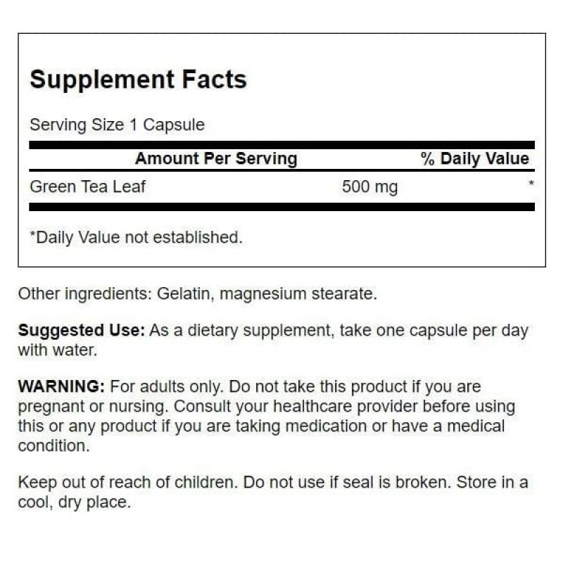 Зеленый чай (Green Tea) 500 мг - содержит мощные антиоксиданты - полифенолы. Антиоксиданты борются с свободными радикалами - соединениями, которые могут изменять клетки организма, повреждать ДНК и даже способствовать гибели клеток.